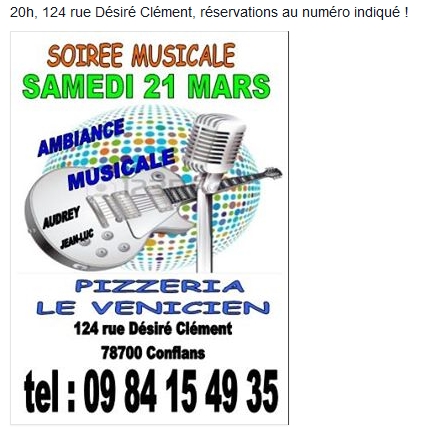 cette soirée à eu lieu à conflans st Honorine le 9 janvier 2016